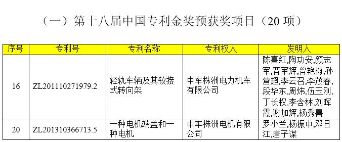 日前,第18屆中國專利獎評審結果在國家知識產權局網站公示,由集佳代理的“輕軌車輛及其鉸接式轉向架”、“一種電機端蓋和一種電機”2項發明專利入選中國專利金獎預獲獎名單,15項發明專利入選專利優秀獎預獲獎名單,1項外觀設計入選外觀設計優秀獎預獲獎名單。在此,集佳向獲獎的廣大客戶表示熱烈祝賀!為你們優秀的創新和研發水平點贊!