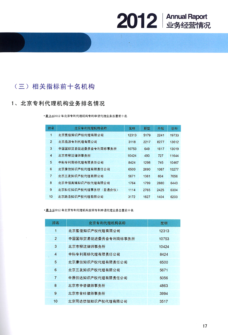 2012北京專利代理年報發布 集佳專利申請總量及發明申請量均列第一