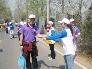 4月24日,天公十分作美。告別多日的陰霾,陽關盡情地普照著大地,仿佛也在迎接4?26的到來。感受著大自然的鳥語花香,每一位集佳的員工都神清氣爽。集佳方陣統一穿著組委會提供的紫色T恤,帶著繡有集佳標志的棒球帽,手里揮舞著集佳小旗,成為活動當天格外醒目耀眼的色彩,也吸引了眾多媒體的閃光燈。
