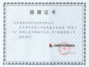 2009-10-26孩子的未來,關乎祖國的希望。作為一家成長中的企業,集佳始終關注貧困地區失學兒童的教育問題。近日,由集佳捐贈四十萬元人民幣援建的第五所希望小學正式獲得中國青少年發展基金會的審批。