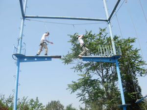 第二天一早,挑戰正式開始:動感顛球、驛站傳輸、移動高爾夫、不倒森林、高空斷橋、合力過橋……當培訓師將一個個項目公布后,大家發現,只有認真分析隊員優勢,合理分配資源,達到默契的協作和配合,而且中間環節沒有大的失誤和錯誤,才能完成任務。炎炎烈日下,雖然隊員當中有的身寬體胖,有的恐高,有的身體協調能力差,但沒有一個被困難嚇倒,沒有一人被落下,“不拋棄、不放棄”成為每個隊員心中的信念。在隊長的帶領下,大家克服重重困難,團結協作,互相鼓勵,全部完成了挑戰任務,而且有的團隊還通過完美的配合創造了破紀錄的佳績。