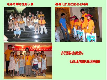 為了減少孩子們對(duì)新環(huán)境的害羞和陌生感。集佳律師事務(wù)所特意安排了年齡相仿的7名律師子女的孩子作為寧夏小朋友的陪同小伙伴。一路上孩子們相互了解,相互關(guān)照,北京的小朋友主動(dòng)的承擔(dān)起小導(dǎo)游,為寧夏小伙伴介紹新北京,新奧運(yùn)。歡歌笑語(yǔ)聲中,羞澀的寧夏小朋友也在不知不覺(jué)中拋開(kāi)了膽怯和陌生,臉上綻放出燦爛的笑容。