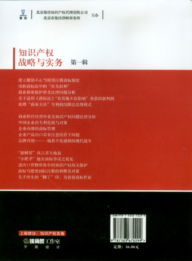 集佳一直倡導(dǎo)在為客戶(hù)提供優(yōu)質(zhì)知識(shí)產(chǎn)權(quán)服務(wù)的同時(shí),注重加強(qiáng)在知識(shí)產(chǎn)權(quán)實(shí)務(wù)和理論方面的研究。在長(zhǎng)達(dá)十余年為客戶(hù)提供卓越服務(wù)的過(guò)程中,集佳積累了非常豐富的實(shí)踐經(jīng)驗(yàn),并在此基礎(chǔ)上總結(jié)形成了豐富的研究成果。近日,集佳將這些成果進(jìn)行了系統(tǒng)整理,并結(jié)集成書(shū)——《知識(shí)產(chǎn)權(quán)戰(zhàn)略與實(shí)務(wù)》(第一輯)。該書(shū)由集佳合伙人會(huì)議主席于澤輝主編,已于近日由法律出版社面向全國(guó)正式出版發(fā)行。