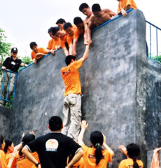 2004年5月16日,集佳知識產(chǎn)權(quán)代理有限公司廣州辦事處的全體員工來到了南國奧林匹克花園陽光拓展訓(xùn)練基地,參加了一場融認(rèn)識、行為、情緒、訓(xùn)練于一體的拓展訓(xùn)練。通過“信任背摔”、“攀巖”、“進(jìn)化論”、“求生畢業(yè)墻”等各種現(xiàn)代化的“體驗(yàn)學(xué)習(xí)”,讓大家充分體驗(yàn)到了突破極限的樂趣,更自信地面對人生,同時,這次拓展訓(xùn)練也激發(fā)了大家對心理、思維習(xí)慣的重新認(rèn)識,鍛煉出了一支勇敢頑強(qiáng)、拼搏進(jìn)取的團(tuán)隊(duì)。 拓展活動一經(jīng)開始,全體員工在培訓(xùn)師的指導(dǎo)下,自由組合成三個小團(tuán)隊(duì),分別叫做“閃電”、“蝙蝠俠”、和“終結(jié)者”,并且每個組都將各組的圖標(biāo)畫在隊(duì)旗上,同時創(chuàng)作了隊(duì)歌、隊(duì)訓(xùn)。 活動進(jìn)行的第一個項(xiàng)目是“信作背摔”,即每個人均須站在1.5米高的臺上向后面仰倒,由地面上的本組其他隊(duì)員展臂接住。這個項(xiàng)目主要是鼓勵個人克服無謂的心理恐懼突破自我,同時建立和體驗(yàn)對團(tuán)隊(duì)的信任感。這是一個具有一定風(fēng)險(xiǎn)和震撼力很大的自我挑戰(zhàn)項(xiàng)目。我們站在臺上,很多人都不敢倒,害怕隊(duì)員接不住,然而更多的是無法突破自我,無法戰(zhàn)勝自我,是心里上的不敢。此時,全體隊(duì)員迅速調(diào)整好心態(tài),樹立團(tuán)隊(duì)責(zé)任感,在個人與團(tuán)隊(duì)每個組員中建立充分的信任,克服個人的膽怯心理,全體隊(duì)員一個接一個順利地完成了“信作背摔”。接下來我們?nèi)齻€團(tuán)隊(duì)分別進(jìn)行了“樊巖”、“天使之繩”、“高低V空中對掌行”,這些都是合作項(xiàng)目,要求必須兩個人互相支持互相配合才有可能完成的,充分展現(xiàn)了隊(duì)員間的默契與合作精神。 真正考驗(yàn)大家和震憾大家的是最后一個項(xiàng)目“勝利畢業(yè)墻”,這個項(xiàng)目要求公司全體員工一起參加,在規(guī)定的時間內(nèi),團(tuán)隊(duì)的所有人只憑借相互間的合作,從地面攀上離地高達(dá)4米的墻頂上。如果有一個人沒有攀上或超過了規(guī)定的時間,那么所有的人將不能畢業(yè),也就是說有一個上不去則全體失敗。這個項(xiàng)目主要是激勵和強(qiáng)化頑強(qiáng)的的斗志和互助取勝團(tuán)結(jié)必勝的信念。剛開始,當(dāng)我們看到那面高達(dá)4米并且光禿禿沒有任何攀爬借助物的畢業(yè)墻時,很多人都覺得這簡直是不可能的,特別是培訓(xùn)師將規(guī)定時間定為30分鐘的時候,我們真的絕望了! 就在這時張總站了起來,他告訴我們只要大家齊心協(xié)力就沒有辦不到的事,接下來我們明確了目標(biāo),制定戰(zhàn)略——由體質(zhì)好壯實(shí)的男生輪流當(dāng)人墻;先上去兩個手勁大的做接應(yīng);女生先上、男生后上;體重大的最先、體重輕且高的男生壓尾;其它人員伸出雙臂圍在人墻和攀爬的人員周圍做好保護(hù)工作。在大家的共同努力和配合之下,第一個人上去了、第二個人上去了、第三個人接著也上來了……終于最后一個人攀上來了!當(dāng)培訓(xùn)師報(bào)出我們所用的時間時,大家激動得歡呼起來!19分20秒!!我們只用了19分20秒全體39個隊(duì)員就一個不少的成功攀上的求生畢業(yè)墻,我們畢業(yè)了!連我們自己都不敢相信,但這是真的,我們做到了,真的做到了!培訓(xùn)師驚嘆的稱贊到:廣州集佳是一支可以創(chuàng)造神話的團(tuán)隊(duì)! 拓展訓(xùn)練結(jié)束后,每一個員工都重新對團(tuán)隊(duì)做了思考,這次活動使每一個人都受益匪淺:1、在今后的工作特別是團(tuán)隊(duì)中對個人的優(yōu)勢和弱項(xiàng)應(yīng)保持正面和積極的心態(tài)。2、要樹立相互配合、互相支持的團(tuán)隊(duì)精神和整體意識;充分認(rèn)識到團(tuán)隊(duì)合力將創(chuàng)造1+1>2的效績表現(xiàn)。3、改善了人際關(guān)系,形成積極向上的組織氛圍4、改進(jìn)了組織內(nèi)部的溝通與信息交流,掌握團(tuán)體創(chuàng)新和克服團(tuán)隊(duì)溝通障礙的技巧。5、使團(tuán)隊(duì)在面對各種變革和挑戰(zhàn)時更從容有序。6、獲得了一段愉快難忘的團(tuán)隊(duì)生活經(jīng)歷。這些深刻的道理和觀念將牢牢地扎根在公司和每個員工的潛意識中,并且能在日后的工作中與我們集佳的文化相結(jié)合相應(yīng)用,共同為實(shí)現(xiàn)集佳的愿景去奮斗去努力,即做國內(nèi)頂尖、世界一流的知識產(chǎn)權(quán)機(jī)構(gòu);創(chuàng)造百年老店;造就專業(yè)的知識產(chǎn)權(quán)人才! 我們深信:企業(yè)最基本的競爭優(yōu)勢既不是來自技術(shù)也不是來自傳奇式的英雄,而是來自它的團(tuán)隊(duì),而集佳就是這樣一支能創(chuàng)造神話的團(tuán)隊(duì)!