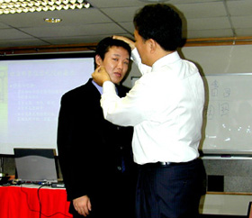 “碰撞精彩生活——集佳職業(yè)形象設計系列講座(一)”成功舉辦后,受到公司廣大女女性員工的歡迎,規(guī)范了女性在工作中的職業(yè)形象,塑造了職業(yè)女性的獨特魅力。為塑造集佳人整體的良好職業(yè)形象,體現(xiàn)集佳人的專業(yè)化、高素質,北京集佳于2003年11月15日在賽特廣場二層會議室內(nèi)為男性員工舉辦了“挖掘自我·煥發(fā)魅力·展現(xiàn)風采”——集佳職業(yè)形象設計系列講座(二)。 盡管講座利用的是周六休息時間,但還是得到了大部分男性員工的支持,有近25名員工參加了本次講座。初冬的北京已經(jīng)滲透出些微寒意,但在集佳講座的現(xiàn)場,輕柔的音樂、最新的秋冬男裝展示以及一杯溫熱香茗,讓溫暖在會場中四溢開來。 本次講座邀請了外交學院外事辦公室副主任、國際交流中心主任文泉老師主講,講座主題圍繞男性著裝、配襯及配套物品、個人儀容、接待禮儀、商務活動中的職業(yè)形象塑造、辦公室禮儀、國際商務禮儀常識等展開,不僅有系統(tǒng)規(guī)范地理論講授,還結合了生動的范例和實物,更好的傳達出良好的職業(yè)形象在實際工作中的重要意義和作用。 為了增強講座的針對性,行政部丁雷為大家做了示范,讓我們感受到花幾分鐘來注意一下細節(jié),就會有截然不同的效果。 文泉老師具有豐富的授課經(jīng)驗,曾赴國家電力總公司國際部、中國建材總公司、東方資產(chǎn)管理公司、江西省科協(xié)、建設部信息中心、浙江省經(jīng)濟學會、中國普天等單位進行國際商務禮儀、職業(yè)形象塑造等培訓,同時,海信集團、廈門國際銀行、德力西集團、重慶電信公司、曲靖卷煙廠等單位的學員都接受過文老師的公開課培訓及企業(yè)內(nèi)訓。