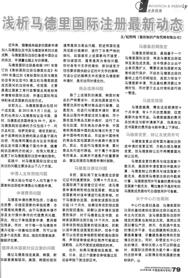 《中國發(fā)明與專利》:淺析馬德里國際注冊最新動(dòng)態(tài)