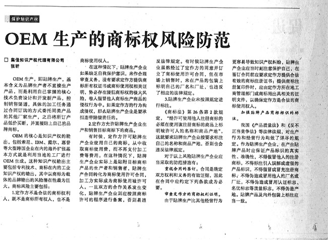 《國際商報》:OEM生產的商標權風險防范