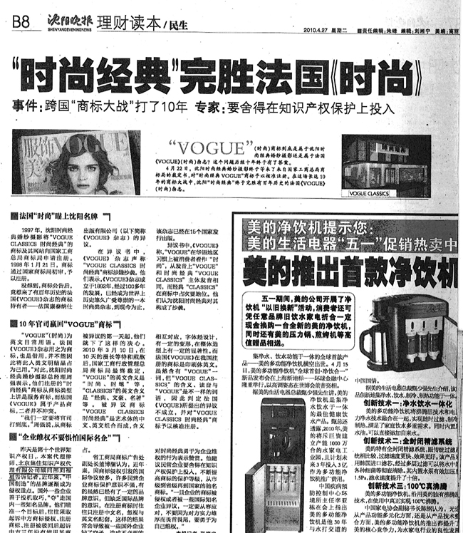 《沈陽晚報》:“時尚經典”完勝法國《時尚》