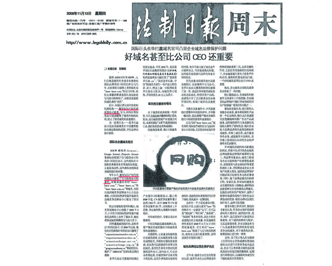 《法制日?qǐng)?bào)》:好域名甚至比公司CEO還重要