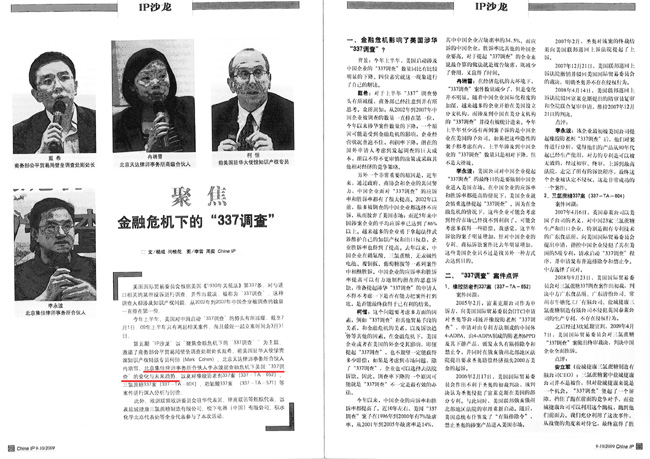 《China IP》:金融危機下的“337”調查
