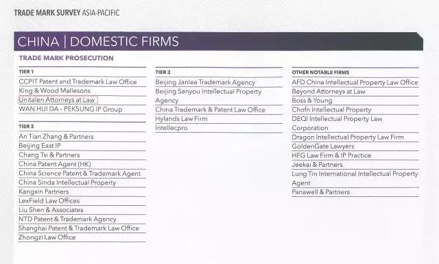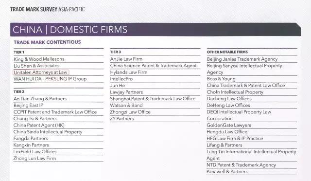 日前,全球權(quán)威知識(shí)產(chǎn)權(quán)雜志Managing Intellectual Property (MIP)公布“2017知識(shí)產(chǎn)權(quán)之星” 商標(biāo)業(yè)務(wù)排行榜,集佳在“商標(biāo)申請”和“商標(biāo)訴訟”領(lǐng)域穩(wěn)居中國區(qū)第一梯隊(duì)(Tier 1)。