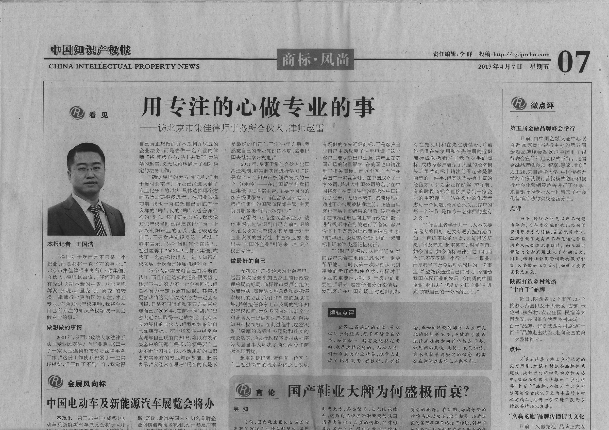 中國知識產權報專訪:趙雷