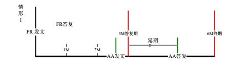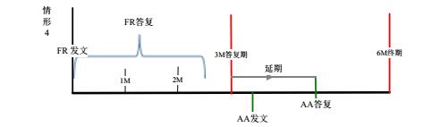?。?)情形1、申請人于FR發文日起的2個月內完成答復,審查員在3個月答復期內發出AA,若AA答復日晚于3M法定期限,則延期自3M法定期限起算。