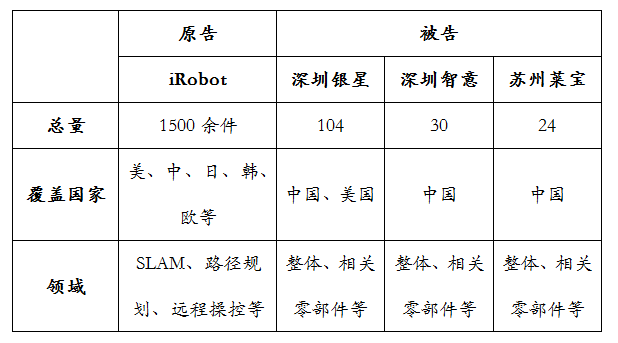 將本案涉及的原告及被告(中國企業)的專利情況進行分析,不難看出雙方實力的巨大差距,iRobot作為全球第一家上市的家用機器人研發、生產企業,其在機器人領域進行了多年的深耕,積累了大量的專利申請,通過較為嚴密的專利組合,形成了較為完善的專利布局。
