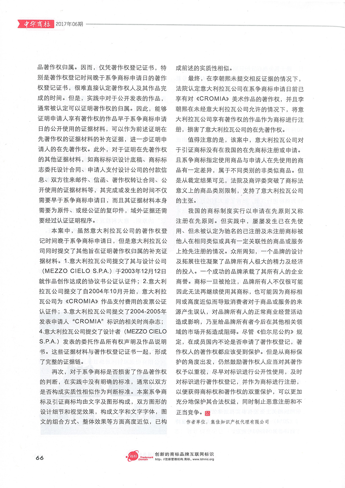 集佳文章《商標(biāo)確權(quán)案中對(duì)在先著作權(quán)的認(rèn)定及保護(hù)》在《中華商標(biāo)》發(fā)表
