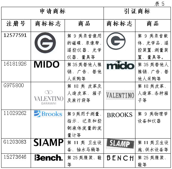 從表2可以看出,申請(qǐng)商標(biāo)和引證商標(biāo)指定商品同樣為相同、類似商品,和表1中所列商標(biāo)的近似度相比,筆者的直觀感覺(jué)是,表2中駁回商標(biāo)和引證商標(biāo)的近似程度更高,感覺(jué)法院在對(duì)待“共存”問(wèn)題的態(tài)度上要更加寬松一些,這也與前述北京高院關(guān)于商標(biāo)共存的意見(jiàn)是一致的。