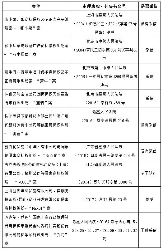 因此,為了保證調查結果的客觀性,需要樣本量達到一定的程度。 但筆者也注意到,在前述調查報告被認定的案件中,僅在“頤中煙草”等幾個案件中,法院對于調查的樣本量進行了評述,比如“頤中煙草”案的法院認為,上述兩調查機構在北京、青島、西安、西寧四個城市中選擇了1200個普通消費者以及12個經銷商,被調查對象數量較多且分布比較合理,因此調查結果能夠相對客觀的反映“壹枝筆”牌香煙在相關公眾中的知曉程度。在FENDI案中,法院認為“芬迪公司在二審提供的問卷調查公證書中所體現的在整體42名受訪者中29名受訪者對于涉案店鋪系品牌直營專賣店或是被品牌方授權所開設的認知,已足以證明上述觀點。”但在其他案件中,并沒有對于樣本量的明確評述和要求。