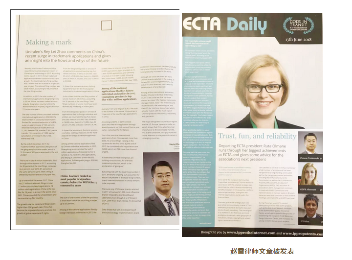 本次年會(huì)上,趙雷律師與世界各國(guó)知識(shí)產(chǎn)權(quán)界同仁探討當(dāng)前熱點(diǎn)話(huà)題和商標(biāo)發(fā)展趨勢(shì),尋求廣泛的合作,同時(shí)也與參會(huì)代表分享了集佳近年來(lái)在國(guó)內(nèi)商標(biāo)領(lǐng)域及境外商標(biāo)實(shí)踐中取得的成績(jī)和獲得的經(jīng)驗(yàn),并與很多國(guó)家的代表建立了廣泛友好的業(yè)務(wù)聯(lián)系。此外,作為ECTA互聯(lián)網(wǎng)委員會(huì)委員,趙雷律師應(yīng)邀參加了互聯(lián)網(wǎng)委員會(huì)會(huì)議,與世界各國(guó)專(zhuān)家同仁就世界范圍內(nèi)互聯(lián)網(wǎng)領(lǐng)域的知識(shí)產(chǎn)權(quán)問(wèn)題進(jìn)行了深入探討。會(huì)議期間,趙雷律師撰寫(xiě)的文章《Making a mark》在會(huì)刊《ECTA Daily》發(fā)表,受到客戶(hù)和業(yè)界同仁的好評(píng)。