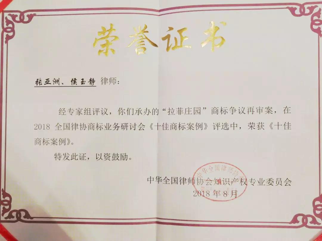 ▲ 集佳代理“拉菲莊園”案件入選“十佳商標(biāo)案例”