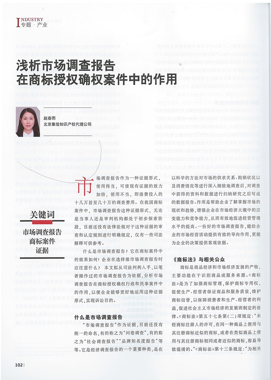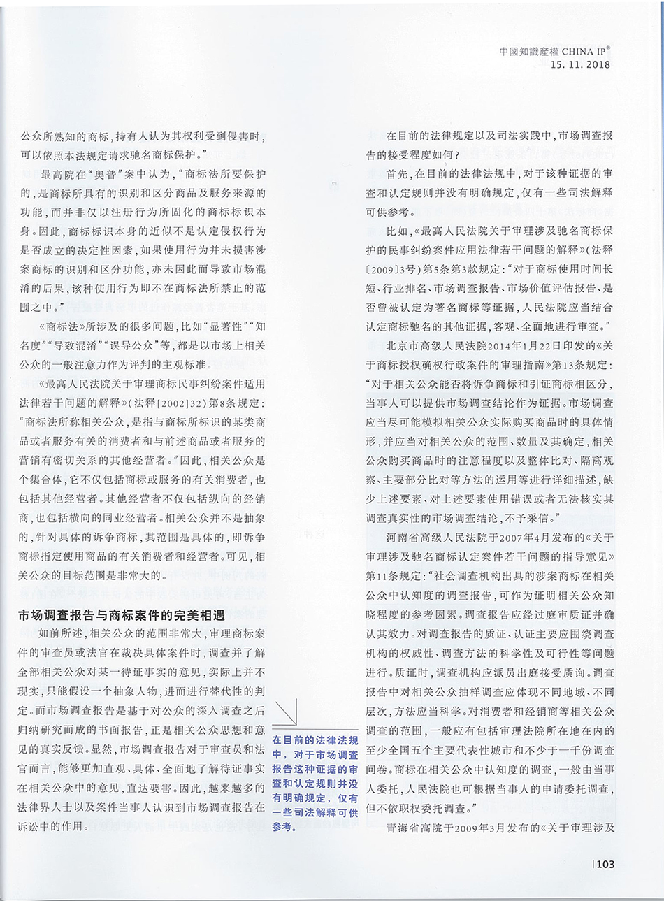 集佳文章《淺析市場(chǎng)調(diào)查報(bào)告在商標(biāo)授權(quán)確權(quán)案件中的作用》在《中國(guó)知識(shí)產(chǎn)權(quán)》發(fā)表