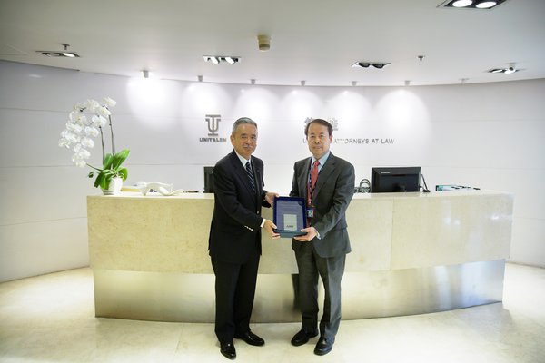 5月21日下午,三菱電機株式會社知識產權中心中心長諏訪裕治先生、三菱電機株式會社知識產權中心手島悠太先生、三菱電機(中國)有限公司知識產權室室長伊達研郎先生、三菱電機(中國)有限公司知識產權室馮文先生一行四人專程來訪,感謝集佳和北京集慧智佳知識產權管理咨詢股份有限公司在過去的一年中對于三菱電機株式會社在中國的知識產權活動做出了杰出貢獻,并向集佳和集慧智佳進行表彰,頒發了表彰盾。據悉,集佳和集慧智佳是2018年度獲三菱電機株式會社表彰的唯二中國知識產權服務機構。