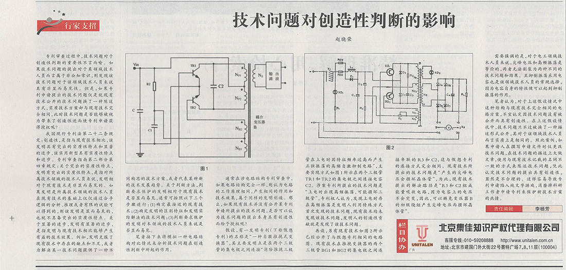集佳文章《技術問題對創造性判斷的影響》在《中國知識產權報》發表