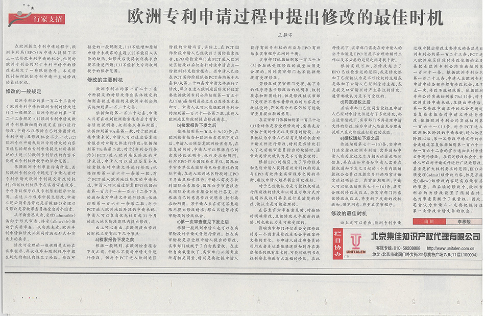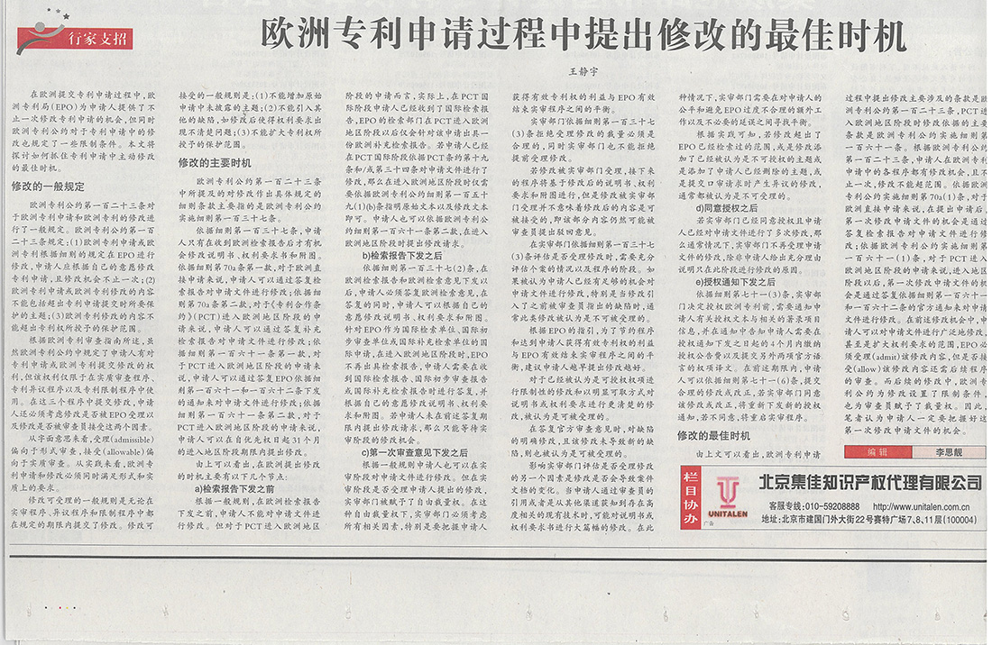 法律聲明 Unitalen Mail Box ?2016 Unitalen Attorneys at Law 版權(quán)所有 集佳知識產(chǎn)權(quán)代理有限公司 京ICP備11033076號 京公網(wǎng)安備11010502020670