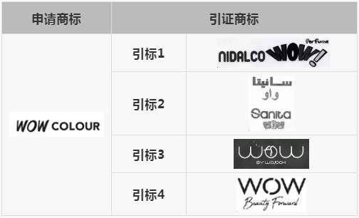 ”第3類、第21類、第35類三件商標注冊申請,被約旦審查員引證多件同類別包含“wow”的在先商標駁回。申請商標和引證商標標識羅列如下:
