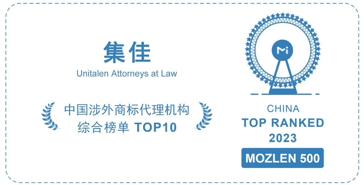 近日,業內領先的商標AI檢索及管理平臺摩知輪重磅發布《MOZLEN 500》中國涉外商標代理機構全球榜單,在中國國家知識產權局備案的近2萬家商標代理機構中,集佳憑借杰出的國際客戶商標代理經驗、業務綜合實力和國際影響力在“中國500家涉外商標代理機構綜合排名” 中位列 TOP 10,被評為 AAA +++(最高級別),并在諸多重點國家業務排名中表現突出被獲得重點推薦。
