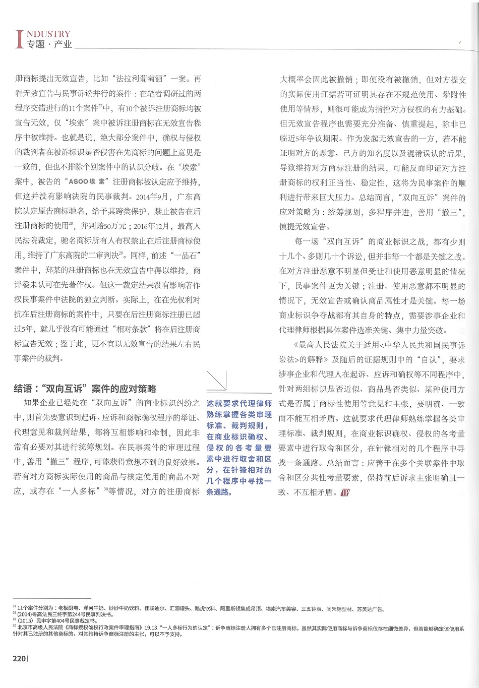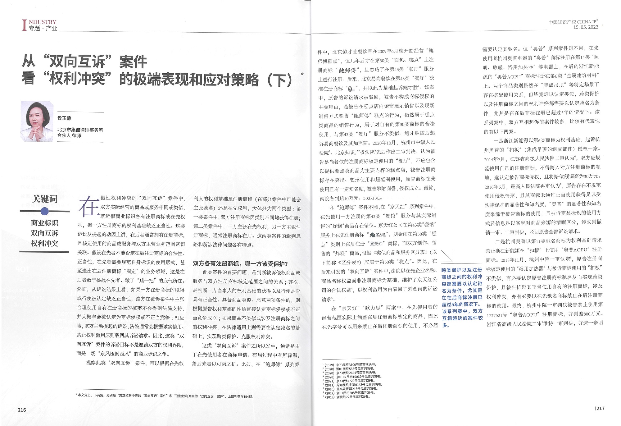 集佳文章《從“雙向互訴”案件看“權利沖突”的極端表現和應對策略(下)》在《中國知識產權》發表