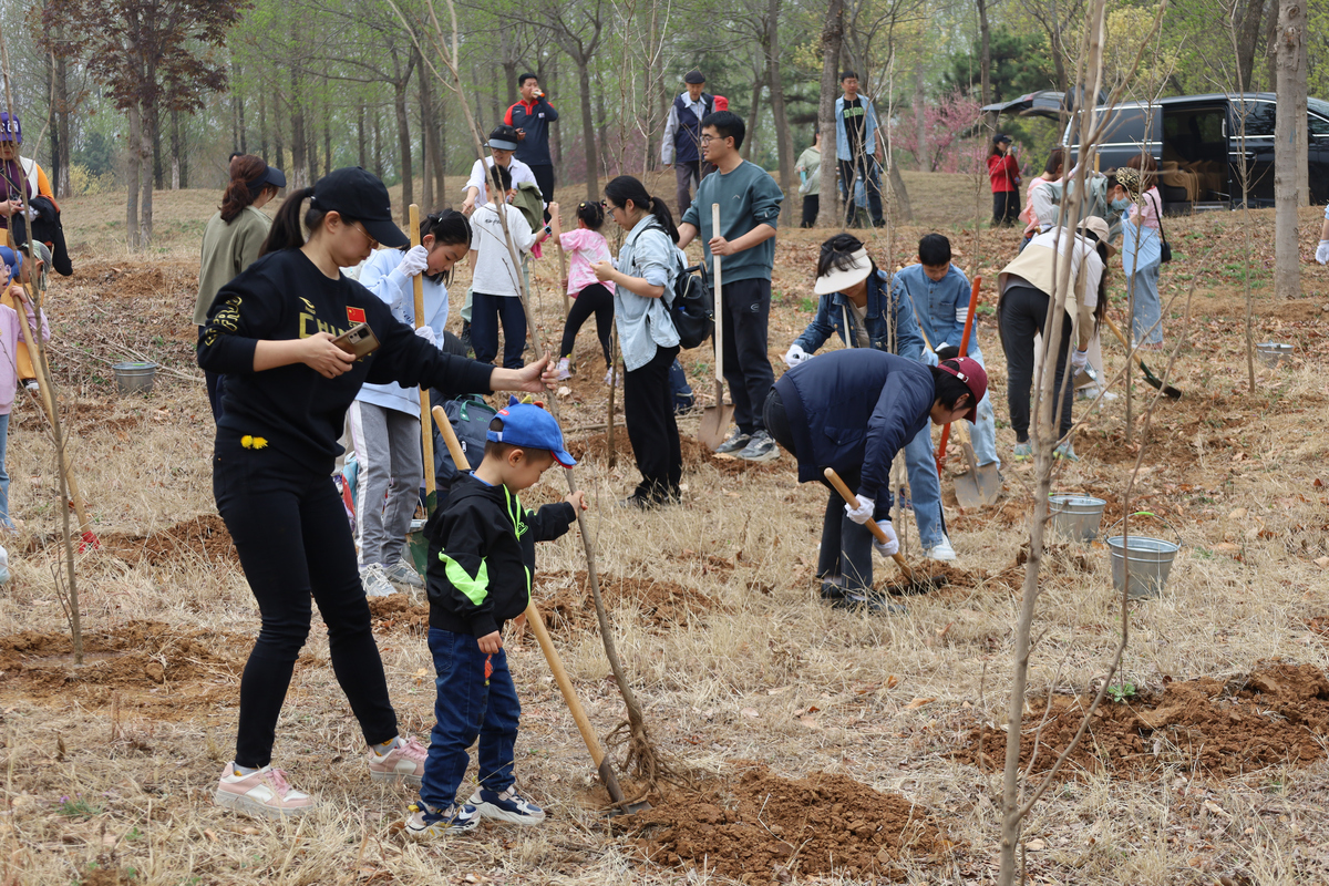 植樹現(xiàn)場(chǎng),大家熱情高漲、干勁十足,