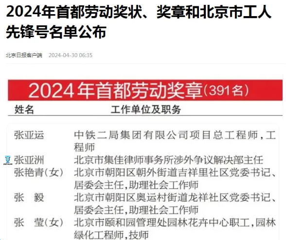 在五一勞動節(jié)來臨之際,北京日報公布了“2024年首都勞動獎狀、獎?wù)潞捅本┦泄と讼蠕h號”名單,該評選由北京市總工會、北京市人力資源和社會保障局組織,旨在弘揚(yáng)勞模精神、勞動精神和工匠精神。集佳合伙人張亞洲律師榮獲2024年首都勞動獎?wù)?/strong>,是首都司法行政系統(tǒng)獲此榮譽(yù)的4名先進(jìn)個人之一!
