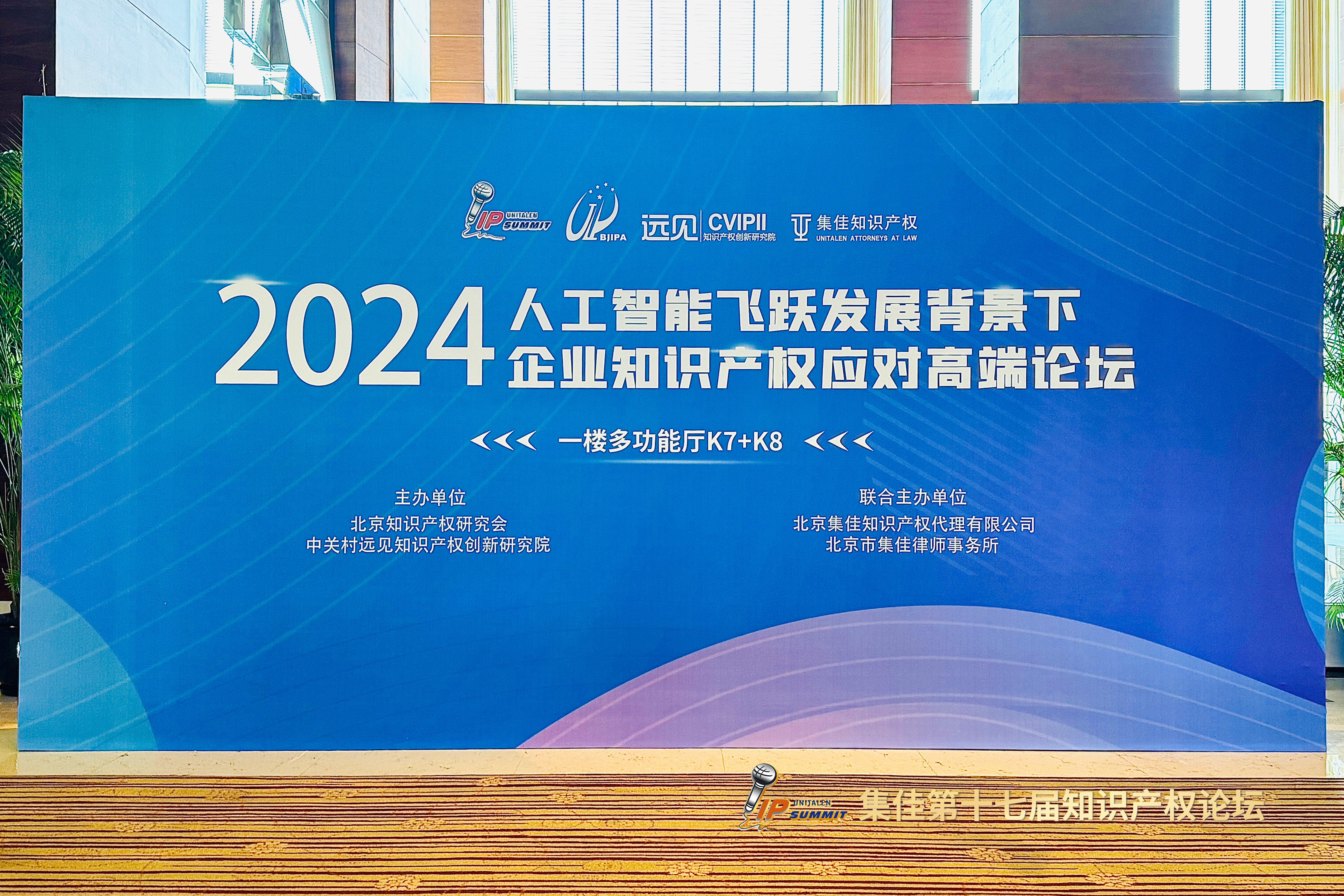 2024年5月16-17日,集佳第十七屆知識產(chǎn)權(quán)論壇——“人工智能飛躍發(fā)展背景下企業(yè)知識產(chǎn)權(quán)管理高端論壇”在蘇州金雞湖凱賓斯基大酒店成功舉辦。本屆論壇由北京知識產(chǎn)權(quán)研究會、中關(guān)村遠(yuǎn)見知識產(chǎn)權(quán)創(chuàng)新研究院主辦,北京集佳知識產(chǎn)權(quán)代理有限公司、北京市集佳律師事務(wù)所聯(lián)合主辦,吸引了來自全國各地的100余位企業(yè)代表參加。