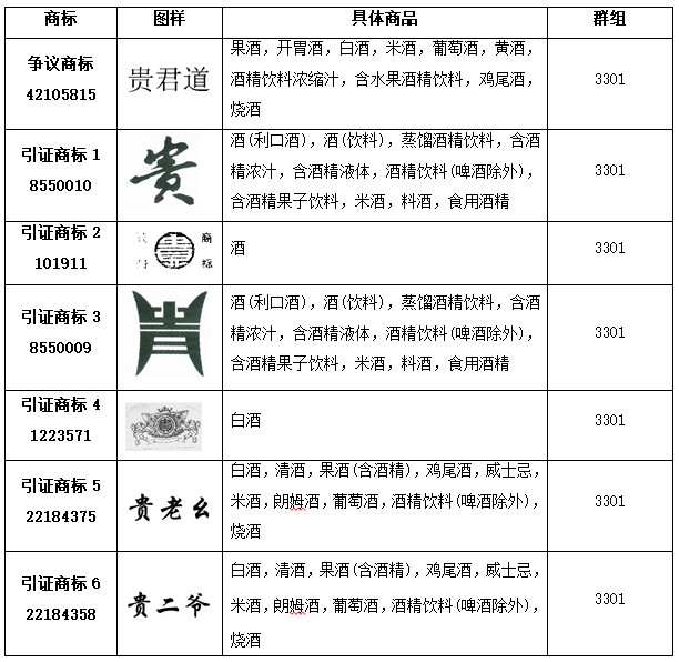 在引證商標(biāo)已經(jīng)具有一定知名度的情況下,作為同行業(yè)經(jīng)營(yíng)者的上海貴酒股份有限公司卻申請(qǐng)了上述“貴君道”商標(biāo)(以下簡(jiǎn)稱“訴爭(zhēng)商標(biāo)”)。貴酒公司依據(jù)《商標(biāo)法》第三十條,對(duì)“貴君道”商標(biāo)提出了無(wú)效宣告。國(guó)知局審查認(rèn)為:訴爭(zhēng)商標(biāo)與引證商標(biāo)構(gòu)成類似商品上的近似商標(biāo),訴爭(zhēng)商標(biāo)違反《商標(biāo)法》第三十條的規(guī)定,應(yīng)該予以無(wú)效宣告。