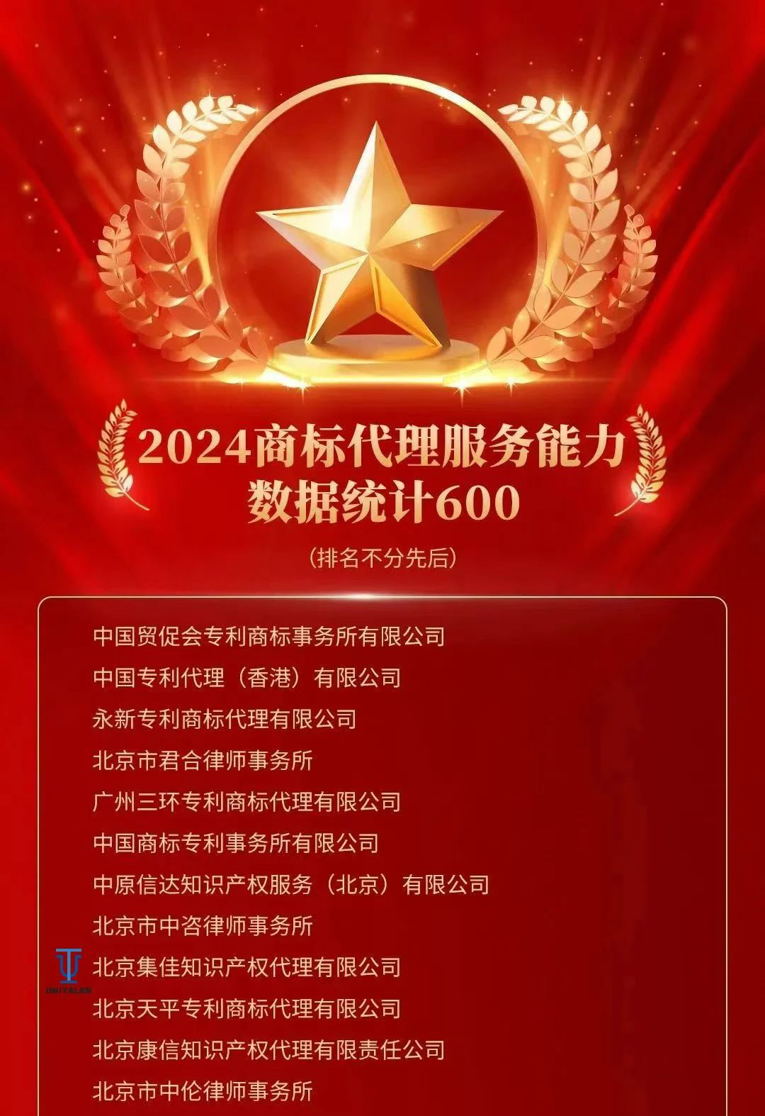由中華商標(biāo)協(xié)會主辦,陜西省品牌建設(shè)促進(jìn)中心、中企商標(biāo)發(fā)展中心承辦,陜西南洋迪克家具制造有限公司總協(xié)辦的第十四屆中國國際商標(biāo)品牌節(jié)將于2024年11月22日至25日在陜西省西安市盛大舉行。11月22日晚,萬眾矚目的商標(biāo)品牌節(jié)歡迎會暨頒獎典禮在西安國際會展中心隆重舉行,來自政府部門、相關(guān)組織以及全國多家企業(yè)和知識產(chǎn)權(quán)機(jī)構(gòu)的1000余名代表共襄盛會。北京集佳知識產(chǎn)權(quán)代理有限公司憑借杰出的專業(yè)實(shí)力,以及長期以來對商標(biāo)事業(yè)發(fā)展和行業(yè)建設(shè)所做出的卓越貢獻(xiàn),蟬聯(lián)2023年度“優(yōu)秀商標(biāo)代理機(jī)構(gòu)”與2024年度“品牌商標(biāo)建設(shè)卓越貢獻(xiàn)獎”殊榮,并榮登“2024商標(biāo)代理服務(wù)能力數(shù)據(jù)統(tǒng)計(jì)600”之5A級機(jī)構(gòu)榜單。