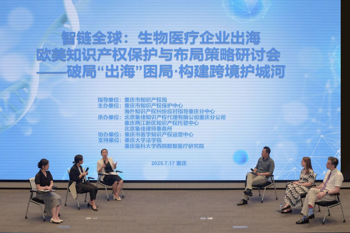 2025年7月17日,由重慶市知識產權保護中心、海外知識產權糾紛應對指導重慶分中心主辦,北京集佳知識產權代理有限公司重慶分公司聯合重慶兩江新區知識產權托管中心、北京市集佳律師事務所共同承辦的 “生物醫療企業出海歐美知識產權保護與布局策略研討會” 在渝順利召開。本次會議特邀歐美頂級知識產權律師及本地專家學者,聚焦企業出海痛點,為重慶生物醫療企業破解歐美知識產權壁壘提供專業指引。