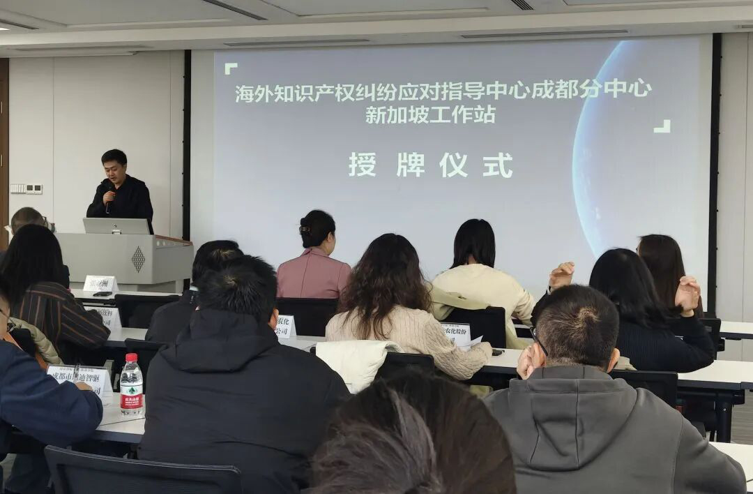 為進一步規范企業組織發展,強化成都市企業海外知識產權布局與保護意識,切實提升涉外知識產權領域的實戰應對能力,有效規避國際市場法律風險,2025年11月7日,由中共成都市委政法委員會、成都市司法局、成都市市場監督管理局主辦,成都市法學會、四川天府新區管理委員會、成都市知識產權保護中心承辦,成都市知識產權保護中心天府新區分中心、 北京集佳知識產權代理有限公司四川分公司協辦的“海外知識產權保護與法律風險防范”專題培訓順利舉辦,并為國家海外知識產權糾紛應對指導成都分中心新加坡工作站北京集佳知識產權代理有限公司進行授牌。