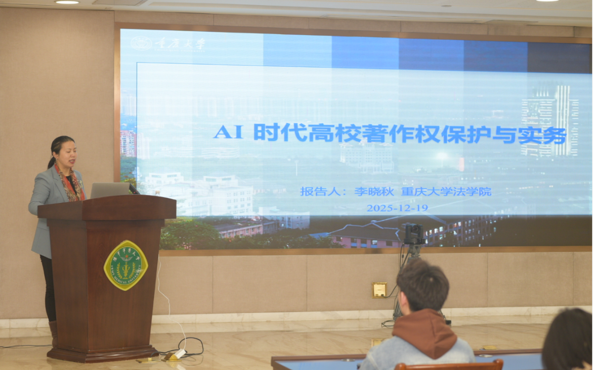 講座第一環節,重慶大學法學院李曉秋教授以"AI時代高校著作權保護與實務"為主題展開分享。作為國家社會科學基金重大專項首席專家、全國知識產權領軍人才,李教授結合"AI文生圖""AI輔助科研論文撰寫"等典型案例,深入解析了AI生成內容的作品屬性判定標準與著作權歸屬規則,明確區分了科研人員主導創作與純AI生成的不同法律場景。針對高校著作權保護核心需求,李教授詳細梳理了職務作品與非職務作品的界定邊界,重點解析了科研項目資助成果、教學課件、學術論文的權屬劃分,并系統講解了著作權登記流程、材料要求及加急辦理渠道。結合軍校數據特性,李教授還就臨床試驗數據、流行病學調查數據等科研數據的著作權可保護性判定、登記適用場景及采集加工過程中的合規要點進行了專項指導,為科研人員規避數據知識產權風險提供了實操指南。